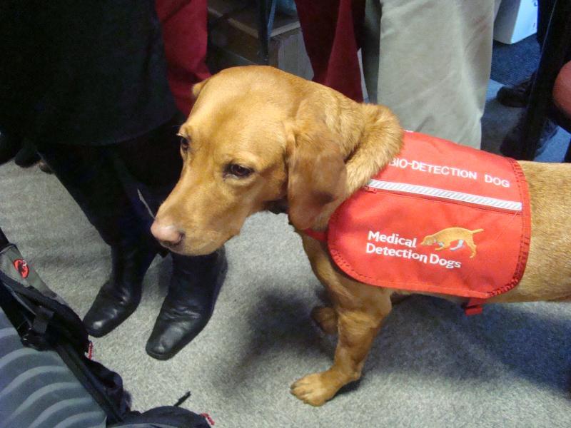 Non è solo la coda, è' tutto il corpo che si muove. Daisy è ansiosa di mettersi al lavoro. Il Labrador color miele ha una mantellina rossa con la scritta «Bio Detection Dog», ovvero un cane incaricato della rilevazione biologica. Ed e' esattamente la missione di Daisy. E' stata addestrata alla diagnosi del cancro. Accompagnata dalla proprietaria, Claire Guest, entra nella sala prove dove è stato costruito un avveniristico carosello in acciaio cromato. Intorno ad essa sono state fissate otto piccole scatole di plastica con pinze e ciascuna contiene una piccola quantità di carta assorbente impregnata con qualche goccia di urina. Questi campioni sono stati raccolti da pazienti con diverse condizioni nefrologiche o vescicali. Di questi campioni di urina, solo uno è stato prelevato da un paziente con un cancro al rene. Claire fa un cenno a Daisy, che si muove velocemente intorno al carosello, annusando le scatole quasi con disinvoltura, poi si siede senza esitazione davanti a una di loro. E' quella che contiene il campione di urina del paziente affetto da cancro al rene. Claire preme il clicker emettendo un rumore secco e metallico che, per Daisy, significa: «Hai fatto un buon lavoro!». Il cane torna dalla sua padrona, si siede pieno di speranza e riceve un biscotto come ricompensa.